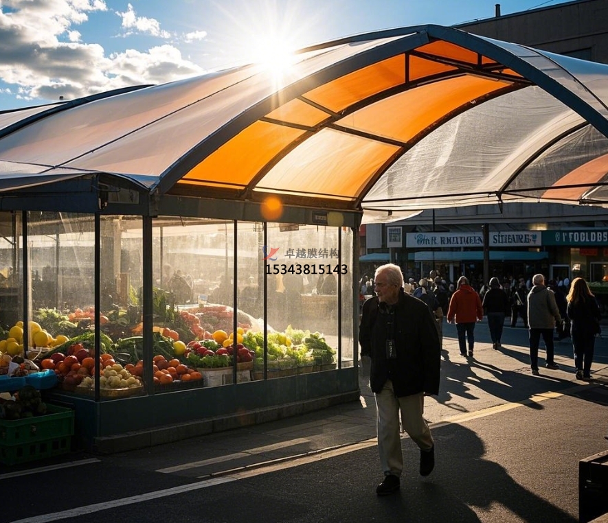 膜結(jié)構(gòu)頂棚憑仗其共同的工作原理、卓越的功用特性、明顯的空間與美學(xué)優(yōu)勢(shì)、杰出的經(jīng)濟(jì)效益與環(huán)保效益,正成為農(nóng)貿(mào)商場(chǎng)晉級(jí)改造的抱負(fù)挑選。它為傳統(tǒng)農(nóng)貿(mào)商場(chǎng)注入了新生機(jī),提升了居民的生活品質(zhì),助力城市煙火氣在更夸姣的環(huán)境中延續(xù)與升騰。跟著技能的不斷進(jìn)步,膜結(jié)構(gòu)頂棚將在農(nóng)貿(mào)商場(chǎng)建造范疇發(fā)揮更為重要的效果,塑造更多美觀、有用、環(huán)保的現(xiàn)代化農(nóng)貿(mào)商場(chǎng)空間。