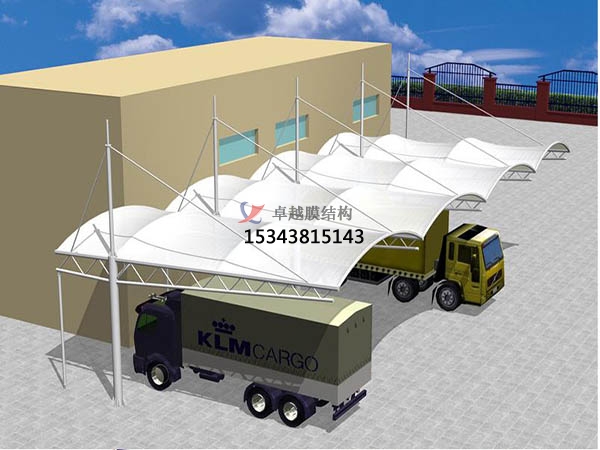 膜結(jié)構(gòu)車(chē)棚,是以建筑織物,即膜材料為張拉主體,與支撐構(gòu)件或拉索共同組成的結(jié)構(gòu)體系,它以其新穎獨(dú)特的建筑造型,良好的受力特點(diǎn),成為大跨度空間結(jié)構(gòu)的主要形式之一。膜材料是指聚酯纖維基布或PVDF、PVF、PTFE等不同的表面涂層,配以?xún)?yōu)質(zhì)的PVC組成的具有穩(wěn)定的形態(tài),并可承受一定載荷的建筑紡織品。它的壽命因不同的表面涂層而異,一般可達(dá)成10-20年。