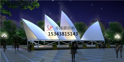 張拉膜景觀建筑排水設(shè)計依可然采用無組織排水或有組織排水方式。由于張拉膜景觀建筑的造型奇特,自由曲面,應(yīng)充分考慮造型與排水的合理方式。張拉膜景觀排水坡度要求大于一般建筑。平膜坡度15%~20%以上,雙曲膜脊度應(yīng)大于10%。同時膜面預(yù)張力1.0~2.0kN/m以上,避免膜材在雨水作用下發(fā)生較大變形,從而在膜面產(chǎn)生積水、兜水。膜面積水具有馬太效應(yīng)特點,積水將導(dǎo)致局部凹陷變形,凹陷變形反過來加劇積水現(xiàn)象。足夠坡度、曲率和張力水平是保證排水順暢的必要條件。導(dǎo)水板、導(dǎo)水溝、落水管等張拉膜景觀設(shè)計宜與膜節(jié)點構(gòu)造設(shè)計協(xié)調(diào)。