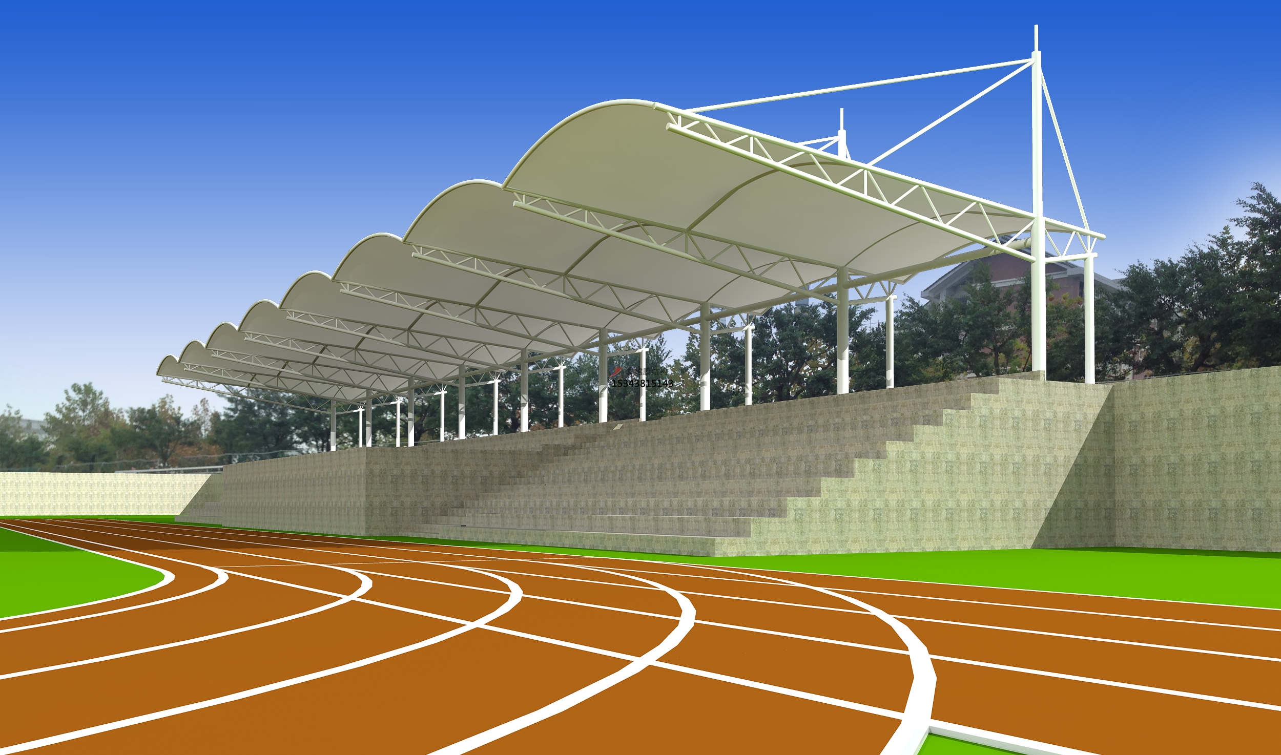 3、赤峰市紅旗中學體育場看臺頂棚/運動場主席臺/風雨操場雨棚生產(chǎn)廠家