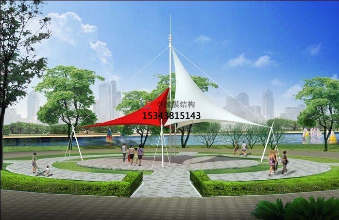 張拉膜景觀是20世紀(jì)中期發(fā)展起來的一種新型建筑結(jié)構(gòu)方法,污水池棚它是由多種薄膜材及加強(qiáng)構(gòu)件(鋼架、鋼柱或鋼索)經(jīng)過一定方法使其內(nèi)部發(fā)生必定的預(yù)張應(yīng)力以構(gòu)成某種空間形狀,并能接受必定的外荷載作用的一種空間結(jié)構(gòu)方法