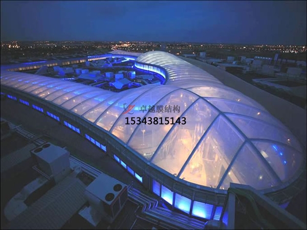 1.造型多變。青海ETFE膜結(jié)構(gòu)與其他膜結(jié)構(gòu)稍稍有些不同,它采用一小片一小片的ETFE膜材料安裝在多變的鋼構(gòu)件中,其造型可根據(jù)鋼構(gòu)件的造型而變,如:伊甸園的六邊形,水立方的不規(guī)則形狀等,賦予了建筑鮮活的生命,讓人一眼便能記住。