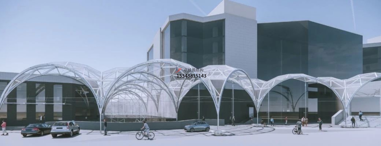 張拉式索膜結(jié)構(gòu)可以根據(jù)需要制成任意復(fù)雜曲面形狀,體現(xiàn)自然流暢之美;并有多種顏色的膜材可選,以適應(yīng)周邊的環(huán)境、滿足建筑效果要求;而且膜結(jié)構(gòu)質(zhì)量輕,一般不需要太龐大的支撐結(jié)構(gòu),這是其他建筑材料無法比擬的優(yōu)勢所在。