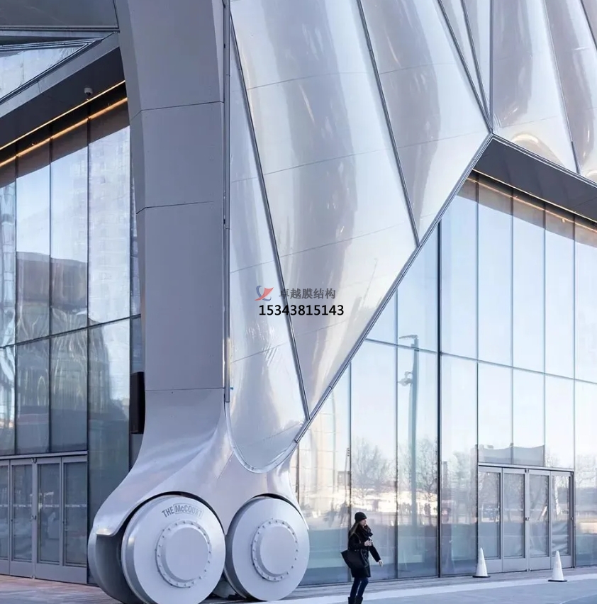 骨架式膜結(jié)構(gòu)的顯著特點在于:膜不是維持結(jié)構(gòu)體系存在的必要結(jié)構(gòu)單元,但膜又不僅僅是單純地用來覆蓋屋面體系,而是充分發(fā)揮了其建筑采光功能、高強度受力特性。