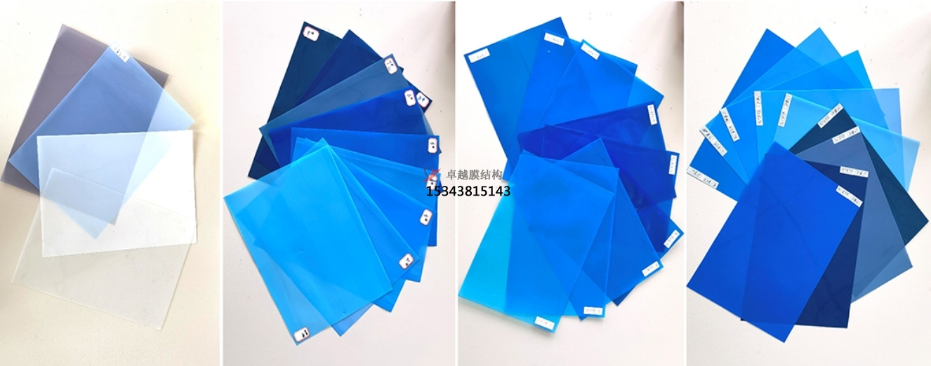 2022年,大連梭魚灣體育中心,立面使用德國NOWOFOL ETFE 9種不同藍色彩膜,頂面內(nèi)圈使用透明
