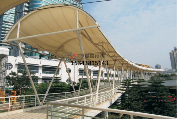 膜結(jié)構(gòu)遮陽(yáng)篷:膜的遮陽(yáng)篷材料的結(jié)構(gòu)是膜結(jié)構(gòu)遮陽(yáng)篷,膜材料,更大的特點(diǎn)是高強(qiáng)度,耐久性好,阻燃,清潔性好,不受紫外線輻射,使用壽命長(zhǎng),一般15 - 30年。透光率高,透光率為13%,反射熱量的73%,熱量可以吸收一些。
