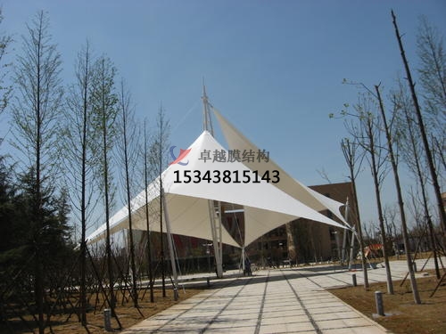 張拉膜景觀修建的支撐通常為鋼布局,國內關于鋼布局的維護多選用涂防火涂料。國外相似修建大多是不涂防火涂料的。還有一種更為保險的辦法就是在布局上作處置使膜面緊貼在鋼索下面,火災中煙氣很好的要面臨的是膜面,這樣鋼索下面又多了一個維護層而使鋼架不受任何高溫作用。