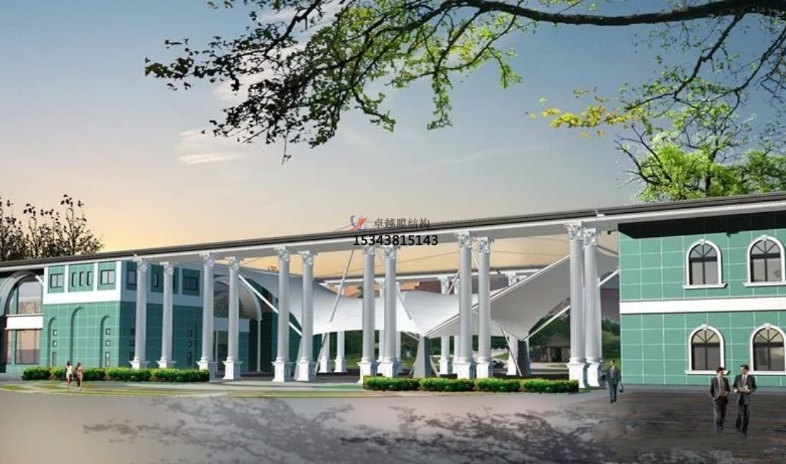 膜結(jié)構(gòu)大門作為建筑或景區(qū)入口,用來(lái)遮風(fēng)擋雨,也是景區(qū)的臉面,是景區(qū)神韻的表達(dá),不僅要求其造型新穎,有創(chuàng)意,而且還要考慮建造材質(zhì)。