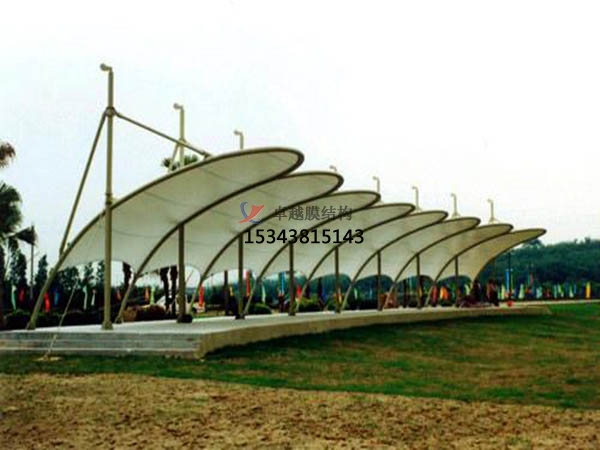 膜結(jié)構(gòu)遮陽棚是現(xiàn)代非常流行的一種遮陽棚建筑,對于這類遮陽棚的防雷措施應(yīng)根據(jù)不同的設(shè)計造型及覆蓋面積進行設(shè)計。當(dāng)支承膜面的鋼構(gòu)桅桿、柱采用油漆或鍍鋅防腐時,可直接作為避雷線和垂直接地導(dǎo)電線。如果桅桿采用噴塑等防腐,尚應(yīng)加避雷線,但可作為地線。