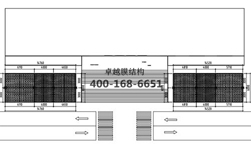 本工程膜材采用白色高端國(guó)產(chǎn)膜材PTFE高自潔環(huán)保建筑膜材A級(jí)防火,鋼結(jié)構(gòu)采用更好的標(biāo)準(zhǔn)Q235B鋼材,表面采用酚醛底漆處理,面漆采用白色鋼結(jié)構(gòu)專(zhuān)用快干磁漆。