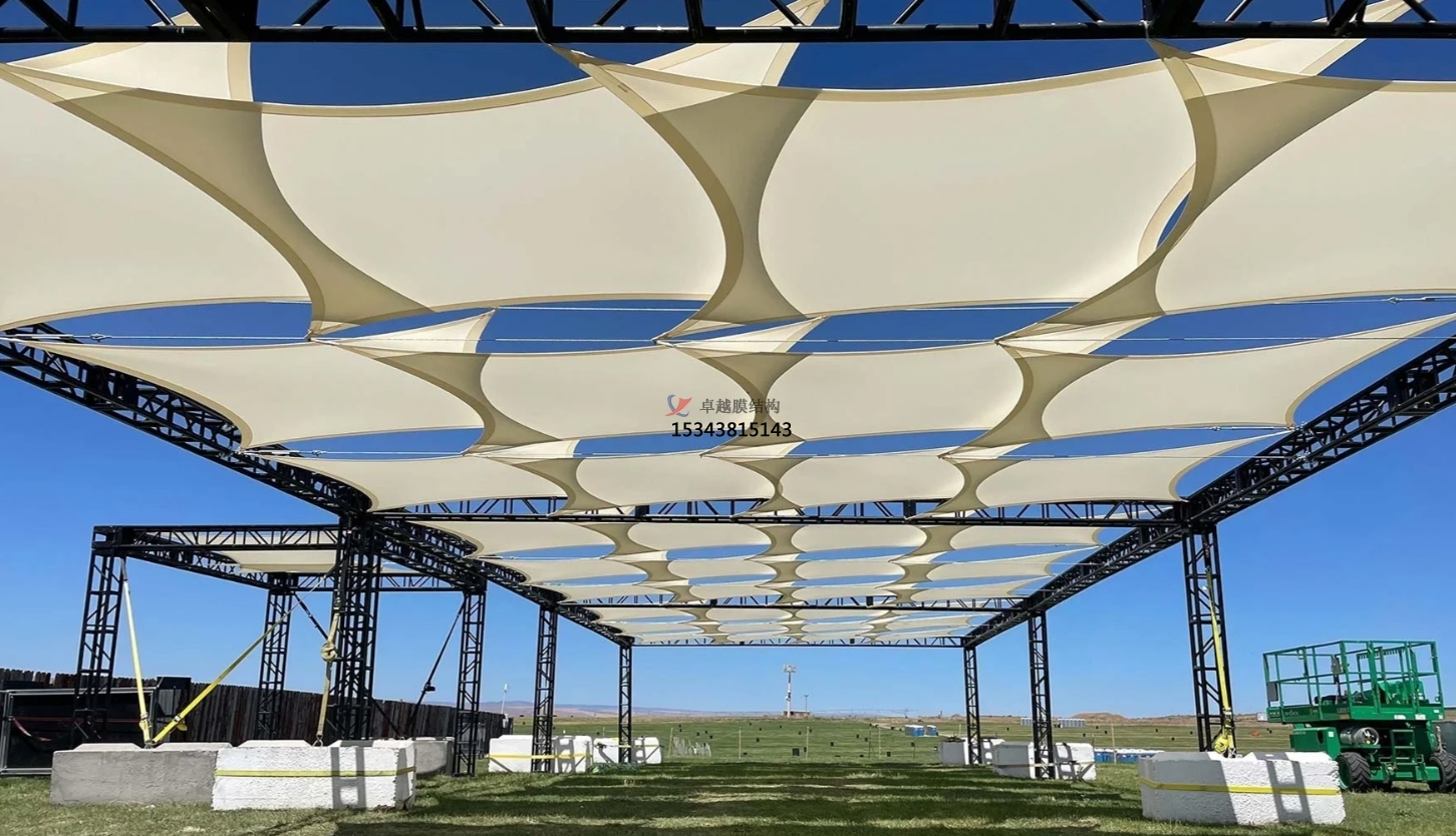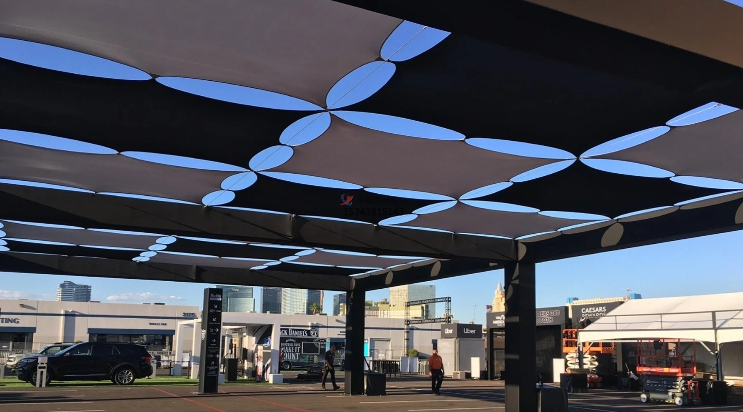 膜結(jié)構(gòu)突破了傳統(tǒng)建筑的刻板印象,擁有豐富多樣的造型。在廣場(chǎng)上,它可以是巨大的傘狀結(jié)構(gòu),為人們提供廣闊的遮陽(yáng)空間,那流暢的曲線,仿佛是被風(fēng)吹拂的裙擺,輕盈而優(yōu)雅;在公園中,膜結(jié)構(gòu)又能設(shè)計(jì)成靈動(dòng)的波浪形,與周圍的綠樹、草坪相呼應(yīng),如同起伏的綠色海洋中涌起的白色浪花,成為視覺焦點(diǎn)。其造型既可以簡(jiǎn)潔大氣,展現(xiàn)現(xiàn)代都市的簡(jiǎn)約風(fēng)格,又能通過(guò)復(fù)雜的曲面組合,呈現(xiàn)出獨(dú)特的藝術(shù)韻味,滿足不同場(chǎng)所的設(shè)計(jì)需求。