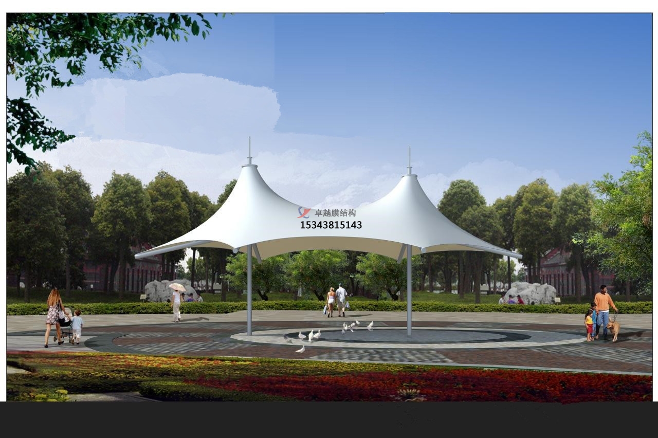 7、我司根據(jù)環(huán)境及應(yīng)用場合的不同,把選好的“面料”(膜材)按尺寸裁剪,設(shè)計出各種獨特的建筑款式,再與“輔料”(加強構(gòu)件,如鋼架、鋼柱或鋼索)結(jié)合通過一定方式使其內(nèi)部產(chǎn)生一定的預(yù)張應(yīng)力以形成某種空間。結(jié)構(gòu)安全,質(zhì)量可靠,歡迎來電訂購,聯(lián)系電話:13101719686。