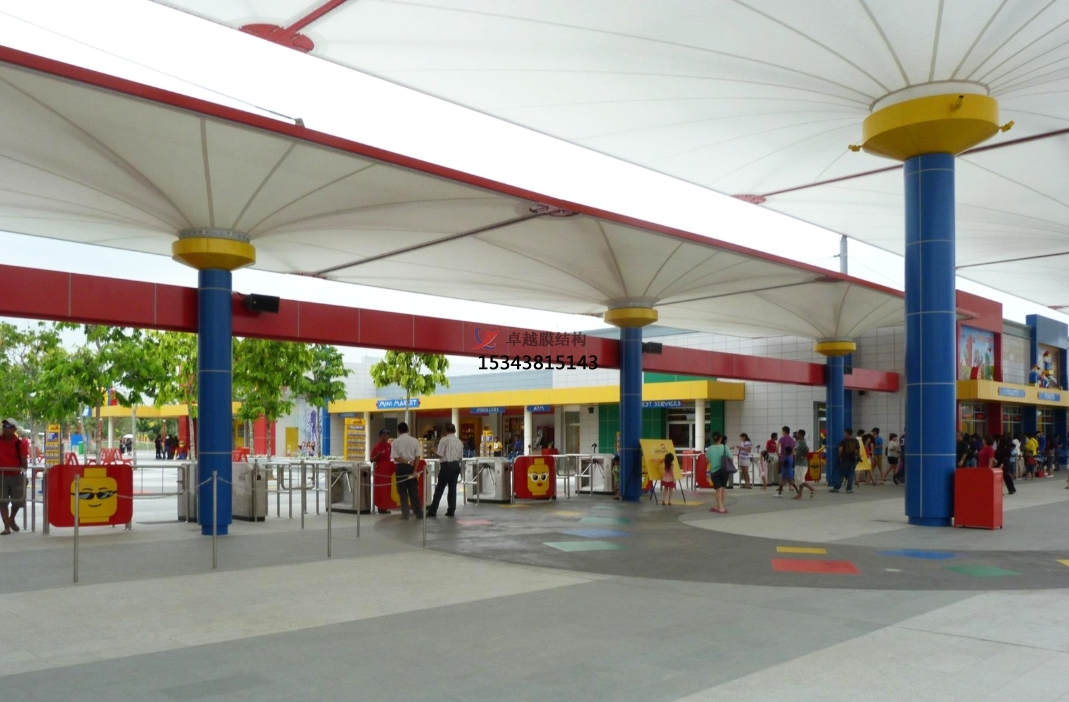 膜結(jié)構(gòu)遮陽(yáng)棚,不僅能夠?yàn)橛慰吞峁┱陉?yáng)避雨的場(chǎng)所,還能增加游樂(lè)設(shè)施的視覺(jué)吸引力。此外,在排隊(duì)等候區(qū)、休息區(qū)等場(chǎng)所設(shè)置的膜結(jié)構(gòu)遮陽(yáng)棚,也為游客提供了更加舒適、便捷的等待環(huán)境。