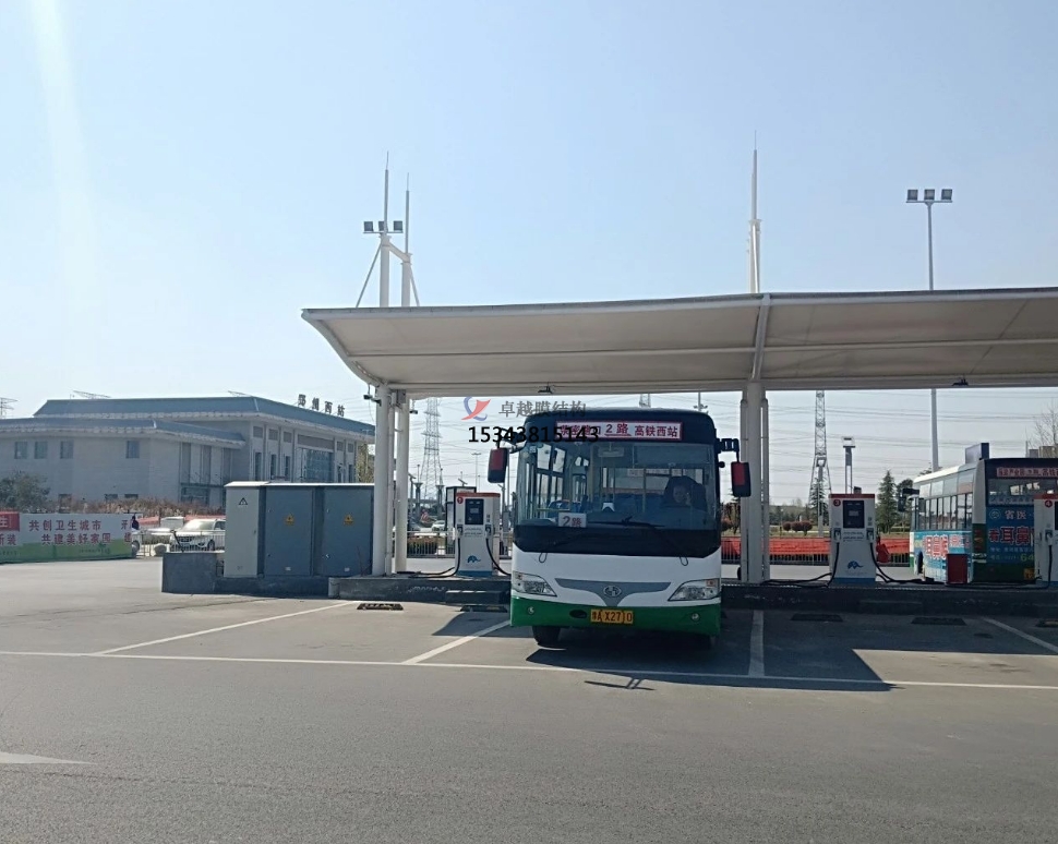 膜結(jié)構(gòu)車棚在此發(fā)揮了重要作用。一般采用骨架式,先用鋼材制成骨架,然后安裝膜材,通過加強構(gòu)建(鋼索、鋼柱)使其內(nèi)部產(chǎn)生一定的張力行程車棚形狀,能夠承受一定的風載荷跟雪載荷。使用張拉式的也比較多。也有使用充氣式的,這種比較高端維護成本比較高使用比較少。