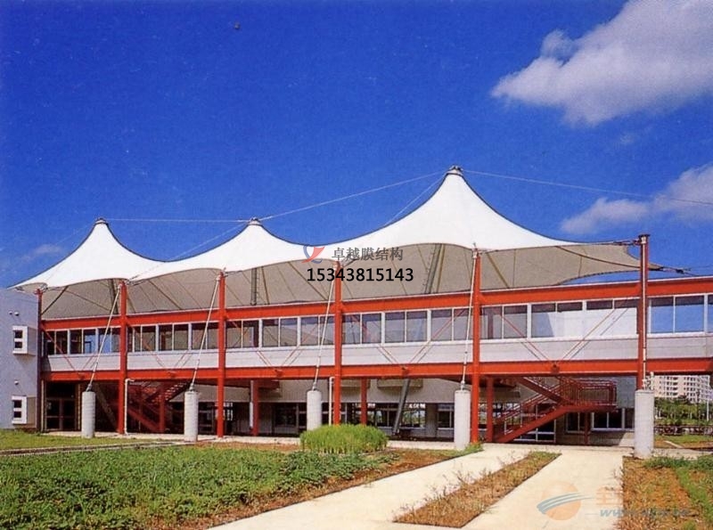 膜材自身具有透光性,種一特色使得張拉膜景觀內(nèi)部很亮,這開創(chuàng)了修建中的很好的例。這種共同的結(jié)構(gòu)能習(xí)慣各種功用,可廣泛應(yīng)用于街景修建、機場候機廳、體育場館、會議廳、展覽館等修建,等等的種些特性,使得這種材料具有無限的潛力。
