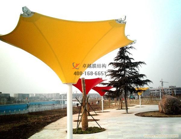6、這是我司十堰及周邊地區(qū)完工的膜結(jié)構(gòu)景觀工程案例,膜結(jié)構(gòu)景觀具有外觀新穎,經(jīng)濟(jì)適用,適用壽命長(zhǎng),節(jié)能透光等優(yōu)點(diǎn)。 其張力結(jié)構(gòu)自重小,其主要是依靠預(yù)應(yīng)力而非材料來(lái)保持形態(tài)結(jié)構(gòu)的穩(wěn)定性。所以比傳統(tǒng)的景觀設(shè)施重量輕得多,但卻具有良好的穩(wěn)定性深受廣大用戶的好評(píng),我司所有工程全部通過(guò)專業(yè)膜結(jié)構(gòu)軟件計(jì)算通過(guò),結(jié)構(gòu)安全,質(zhì)量可靠,歡迎來(lái)電訂購(gòu),小編期待您的咨詢,聯(lián)系電話:13101719686。