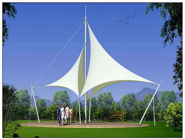 2、膜結(jié)構(gòu)它是一種建筑與結(jié)構(gòu)完美結(jié)合的結(jié)構(gòu)體系,是用高強(qiáng)度柔性薄膜材料與支撐體系相結(jié)合形成的具有一定剛度的穩(wěn)定曲面,能承受一定外荷載的空間結(jié)構(gòu)形式。更好的膜結(jié)構(gòu)設(shè)計(jì)是結(jié)構(gòu)與外形的有機(jī)融合,使其顯得了類拔萃,同時(shí)與自然環(huán)境、歷史及現(xiàn)代的城市景觀有機(jī)結(jié)合。輕型結(jié)構(gòu)可以看成是大型的雕塑作品,可為其周邊空間增添活力,成為周圍環(huán)境的補(bǔ)充和焦點(diǎn) 。