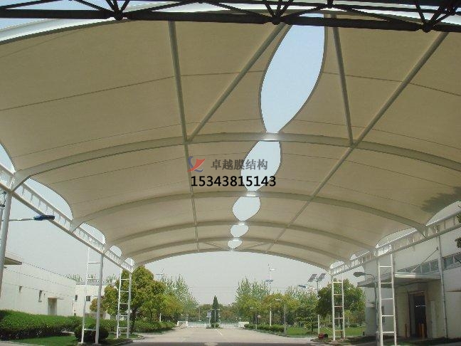 膜結構景觀是建筑結構中更新發(fā)展起來的一種形式,它以性能優(yōu)良的織物為材料,或是向膜內充氣,由空氣壓力支撐膜面,或是利用柔性鋼索或剛性支撐結構將面繃緊,從而形成具有一定剛度、能夠覆蓋大跨度空間的結構體系。自從1970年代以來,膜結構景觀在國外已逐漸應用于體育建筑、商場、展覽中心、交通服務設施等大跨度建筑中。 已成為結構設計選型中的一個主要方案。成為化纖紡織品應用的一個重要領域。