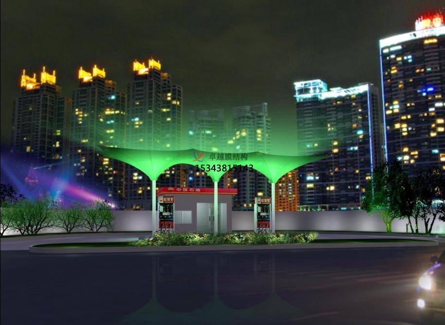 3、中國石化加油站(賽魚站)張拉膜雨棚/頂蓋