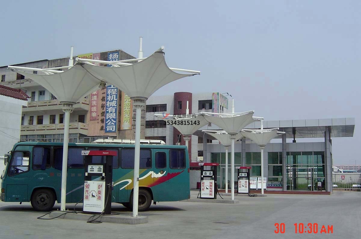 工程概況:公司主營業(yè)務范圍包括:實業(yè)投資及投資管理;石油、天然氣的勘探、開采、儲運(含管道運輸)、銷售和綜合利用;煤炭生產(chǎn)、銷售、儲存、運輸;石油煉制;我們?yōu)樵摷佑驼驹O計建造了張拉膜雨棚,進一步提升了加油站的環(huán)境,為加油站提供了極大的便利。