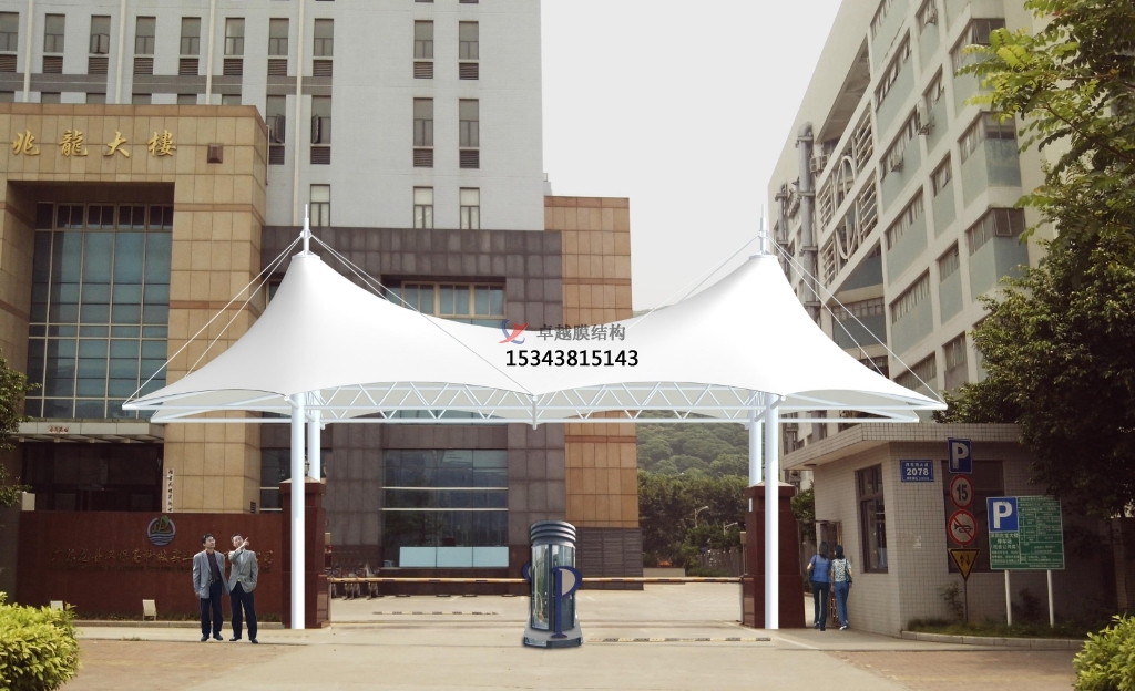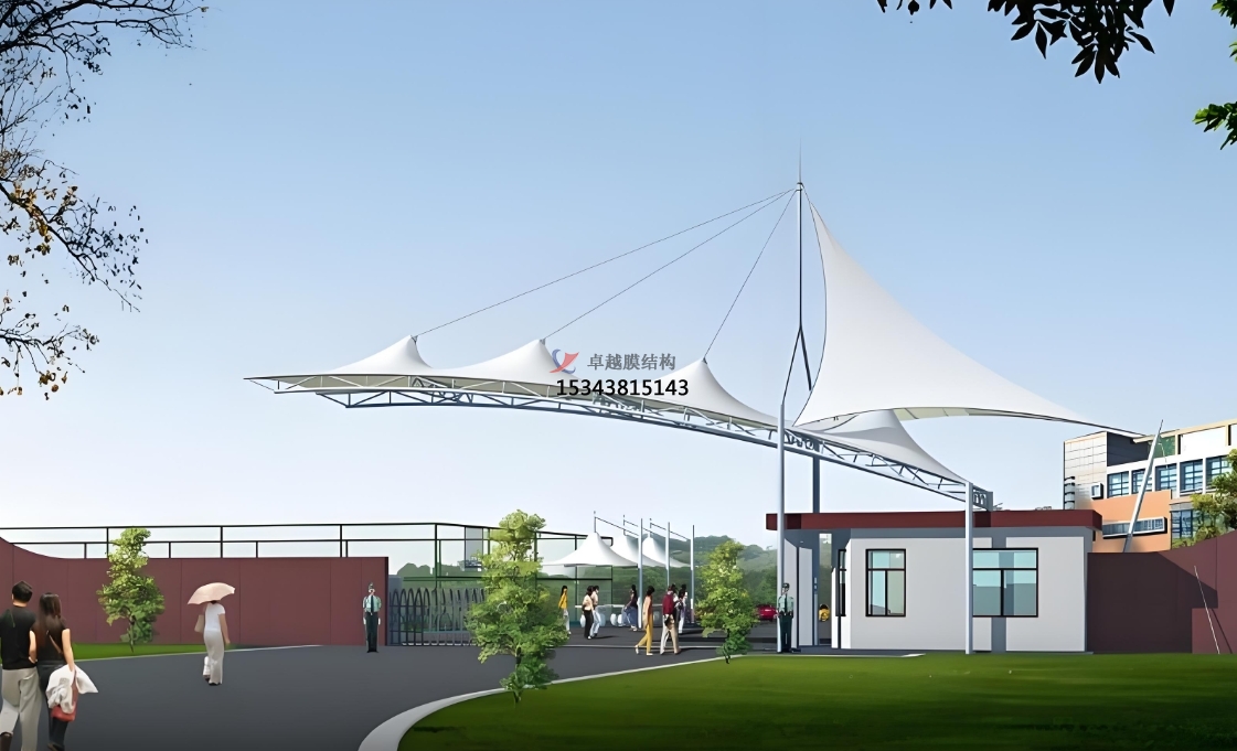 4. 結構穩(wěn)定與承載力強:膜結構設計堅固,能夠承受較大的負荷,確保了進出口的安全性和可靠性。