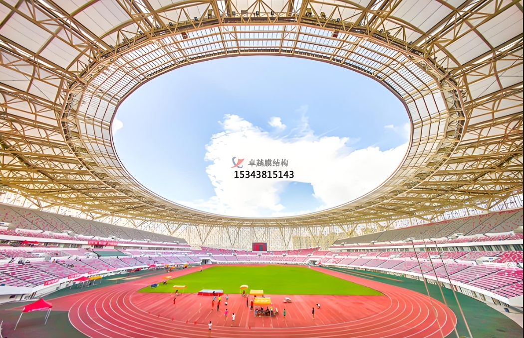 在體育場館及其他設(shè)施采用內(nèi)膜,不僅可以改善透光、吸音及保溫作用,還可以改善建筑外觀,可以將復雜的鋼結(jié)構(gòu)、馬道及各種管道等進行遮擋,采用高通透性的網(wǎng)格膜可以使鋼結(jié)構(gòu)變得若隱若現(xiàn)。