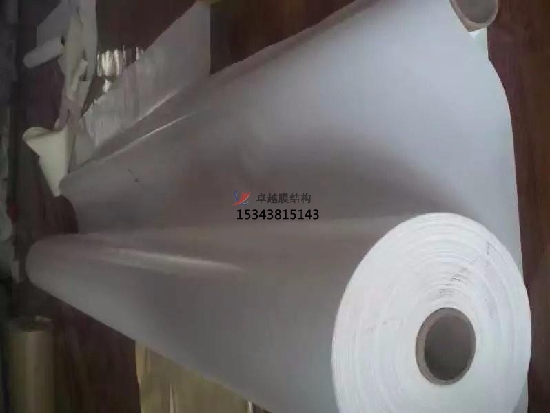 常用的基層主要有玻璃纖維織物(由3微米纖維絲編織而成)與聚酯纖維織物。常用的涂層則有聚四氟乙烯(PTFE)與聚氯乙烯(PVC)?;鶎又饕獮槟げ奶峁┝W(xué)性能,涂層,面層則為膜材提供抗老化,防幅射,增強(qiáng)自潔性等特理性能。一般將以玻璃纖維織物為基層,以聚四氟乙烯為涂層的膜材簡稱PTFE膜材;而以聚酯纖維為基層,以聚氯乙烯為涂層的膜材稱之為PVC膜材。