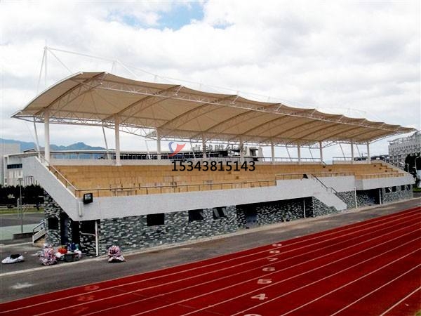 目前用于張力膜結構的膜材料有兩大類:一類為玻璃纖維織物聚四氟乙烯涂層(一般稱PE膜材),使用年限長,價格高,國內很少采用。另一類為高強聚酯纖維織物PvC涂層(一般稱PvC膜材),使用年限相對較短,價格適宜,國內較多采用。此類材料特性須滿足:低彈高強聚酯纖維織物雙面PVC涂層;長期受力狀態(tài)下基本不產生徐變;抗拉強度(經向向):>400014000N/5cm;重量:>950g/m2;厚度>0,8mm;色透光料透率:10%~20%;覆防污自潔涂層: Tedlar或100%PVDF;阻燃B1級;耐腐蝕;抗靜電;適應溫度范圍:-30℃~70℃;水密性氣密性好;壽命:≥15年。