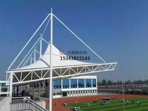 還可以通過更換韌性和光滑度較高的薄膜布料來降低對強(qiáng)風(fēng)和暴雨的抵抗力,同時增加膜結(jié)構(gòu)看臺的張力,從而增加牢固度。由于形成膜結(jié)構(gòu)的原因是屋頂是按照膜材料的張力來展開的,所以我們可以用不銹鋼管連接屋頂,這樣可以有效的抵御風(fēng)雨的侵襲。