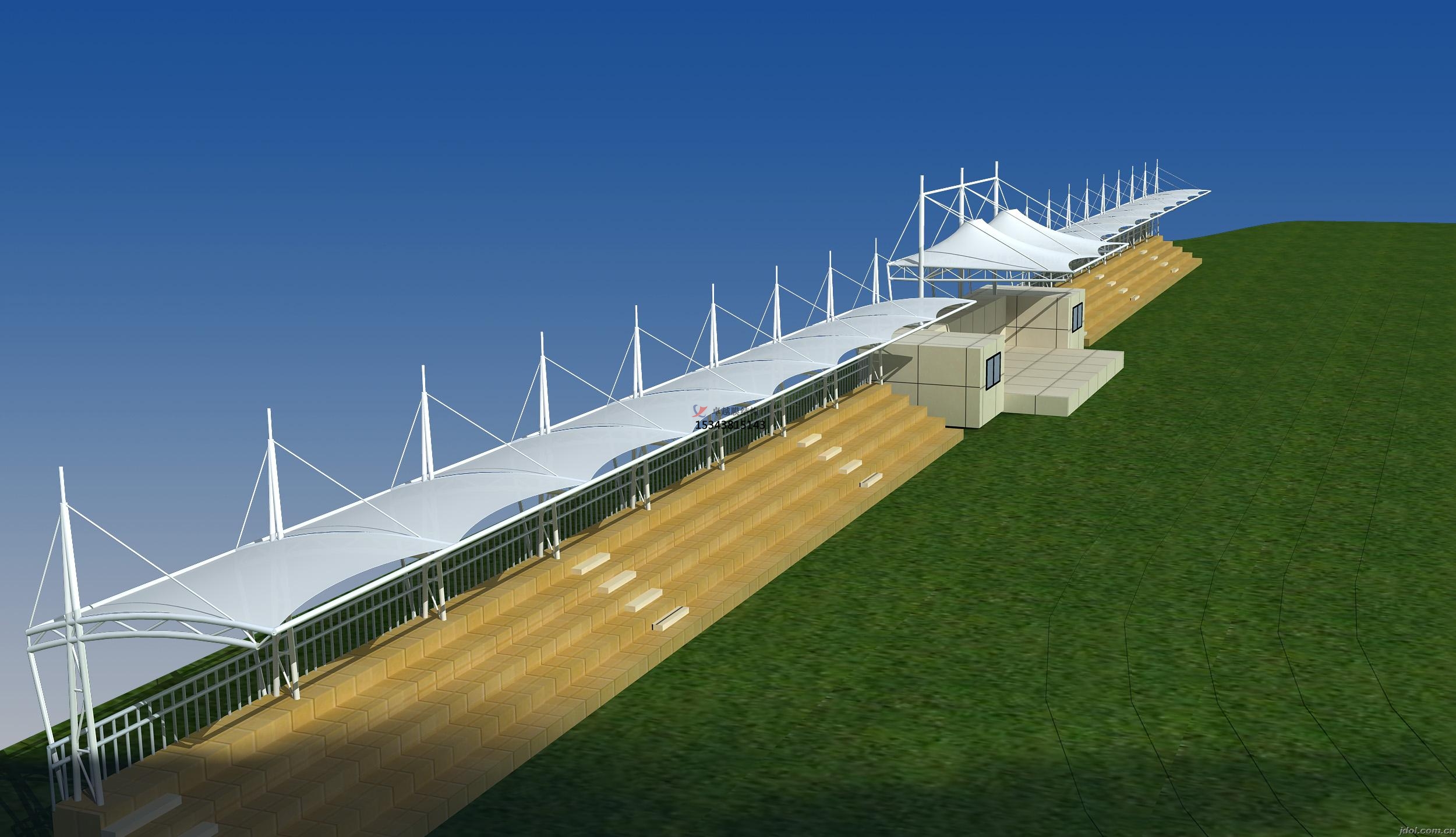2、欒川縣第高級(jí)中學(xué)膜結(jié)構(gòu)看臺(tái)雨篷/主席臺(tái)/舞臺(tái)安裝罩棚
