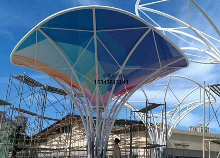 索膜結(jié)構(gòu)建筑施工與建造難點:其在施工中精度要求嚴苛,索網(wǎng)節(jié)點定位誤差需控制在毫米級(如武漢光谷網(wǎng)球中心管內(nèi)預(yù)應(yīng)力桁架張拉),大型項目需分步張拉(如無錫奧體中心分12步提升索網(wǎng))。在特殊工藝要求中,膜片熱合縫寬度需≥40mm(P類膜材)以保證強度,現(xiàn)場焊接環(huán)境(濕度/溫度)直接影響焊縫質(zhì)量。高空作業(yè)也有風險,大跨度屋蓋常需大型吊裝設(shè)備,索膜張拉過程存在失穩(wěn)風險,施工安全管控難度高。