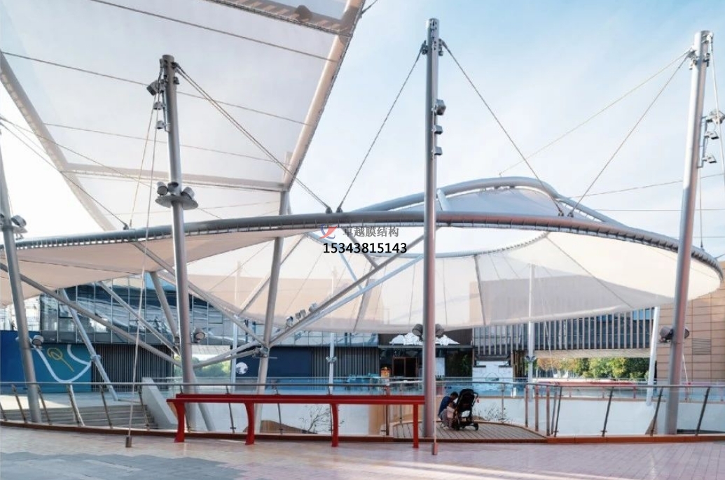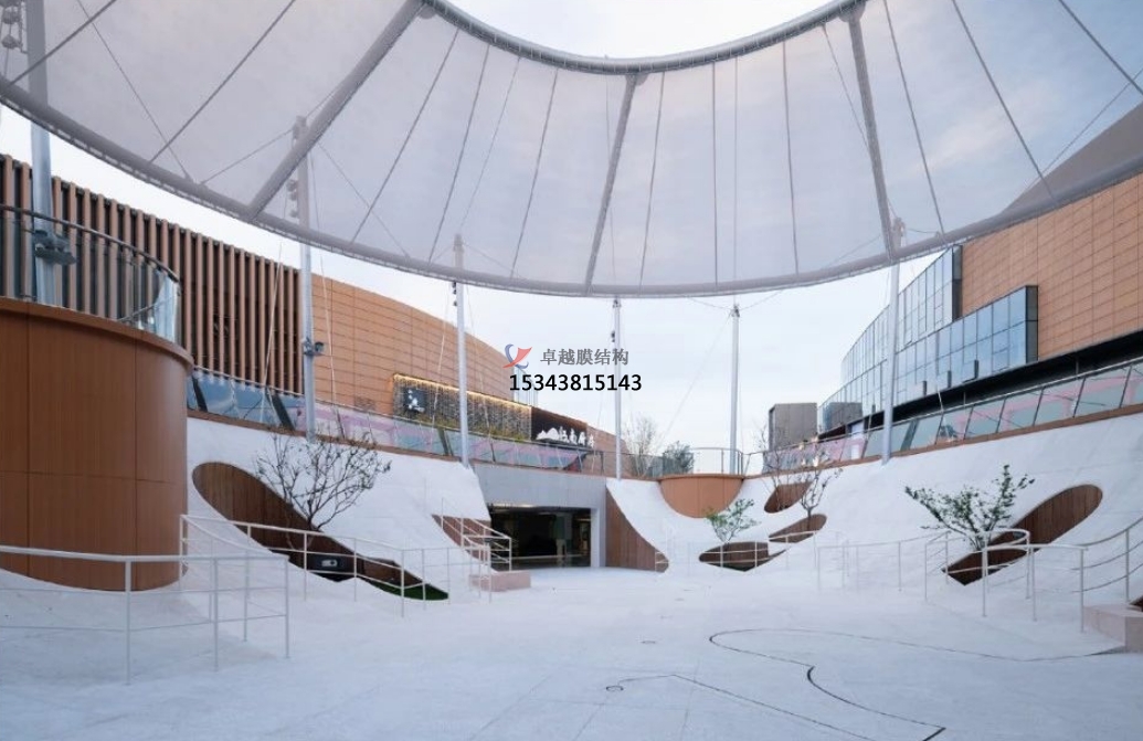 但不管怎么有格調(diào)的下沉式商業(yè)。廣場(chǎng),它也是一個(gè)半露天的公共空間,如果缺乏遮陽(yáng)避雨設(shè)施,無(wú)法提供更加舒適的休閑環(huán)境,因此,在下沉廣場(chǎng)上方增設(shè)頂蓋是非常必要的,而且一個(gè)兼具美觀、時(shí)尚、實(shí)用的頂蓋也是建筑的加分項(xiàng)。