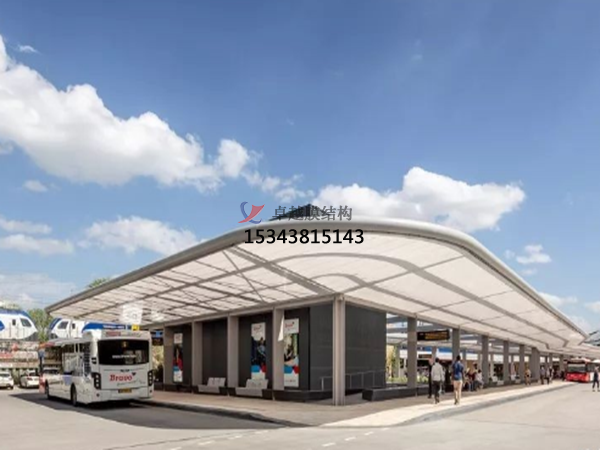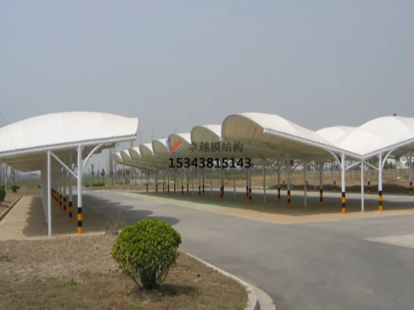 膜結(jié)構(gòu)遮陽棚由立柱和頂棚構(gòu)成。立柱多由金屬合金制作,如鋼,鋁等,質(zhì)量輕且質(zhì)地硬,頂棚則是由膜結(jié)構(gòu)材料制成。