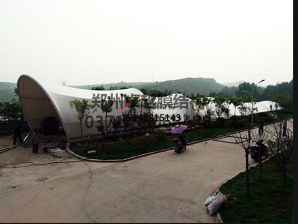 膜結(jié)構(gòu)是用高強(qiáng)度柔性薄膜材料經(jīng)受其它材料的拉壓作用而形成的穩(wěn)定曲面,能承受-定外荷載的空間結(jié)構(gòu)形式。其造型自由、輕巧、柔美,充滿力量感,阻燃、制作簡易、安裝快捷、節(jié)能、易于、使用安全等優(yōu)點(diǎn),因而使它在世界各地受到廣泛應(yīng)用。