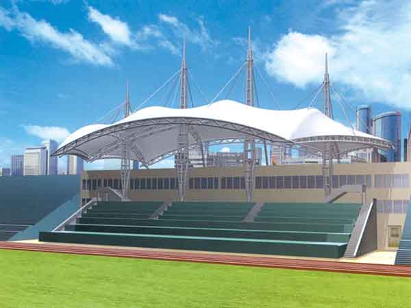 張拉膜看臺(tái)主要用于各類(lèi)地方體育場(chǎng)主席臺(tái)雨棚,各類(lèi)學(xué)校體育場(chǎng)看臺(tái)雨棚遮蓋,我公司是國(guó)內(nèi)較早從事大懸挑張拉膜結(jié)構(gòu)看臺(tái)設(shè)計(jì)施工的專(zhuān)業(yè)廠家,下面介紹一下我們?cè)趯幉ㄊ兄苓吙h市完工的一些張拉膜看臺(tái)設(shè)計(jì)施工案例,我公司先后在寧波周邊承接了寧波職業(yè)技術(shù)學(xué)院張拉膜看臺(tái)雨棚、寧波城市職業(yè)技術(shù)學(xué)院張拉膜看臺(tái)罩棚、浙江醫(yī)藥高等專(zhuān)科學(xué)校張拉膜看臺(tái)遮陽(yáng)棚等設(shè)計(jì)施工項(xiàng)目,簡(jiǎn)介如下:
