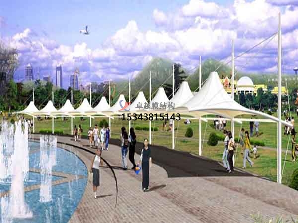 膜材料可濾除大部分紫外線,防止內(nèi)部物品褪色。其對自然光的透射率可達(dá)25%,透射光在結(jié)構(gòu)內(nèi)部產(chǎn)生均勻的漫射光,無陰影,無眩光,具有良好的顯色性,夜晚在周圍環(huán)境光和內(nèi)部照明的共同作用下,膜結(jié)構(gòu)表面發(fā)出自然柔和的光輝,令人陶醉。PTFE膜材和經(jīng)過特殊表面處理的PVC膜材具有很好的自潔性能,雨水會在其表面聚成水珠流下,使膜材表面得到自然清洗。一般膜結(jié)構(gòu)對于低于60Hz的低頻幾乎是透明的,對有特殊吸音要求的結(jié)構(gòu)可以采用具有FABRASORB裝置的膜結(jié)構(gòu),這種組合比玻璃具有更強的吸音效果。單層膜材料的保溫性能與磚墻相同,優(yōu)于玻璃。同其他材料的建筑一樣,膜建筑內(nèi)部也可以采用其他方式調(diào)節(jié)其內(nèi)部溫度。例如:內(nèi)部加掛保溫層,運用空調(diào)采暖設(shè)備等。
