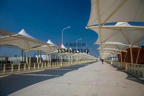 四、根據(jù)膜材料的有效使用年限應(yīng)及時進行替換,膜結(jié)構(gòu)建筑物(building)的全部檢修維護項目應(yīng)包括膜面的形狀、變形、初期張力(解釋:物體受到拉力作用時的相互牽引力)狀態(tài)、全部或局部(part)的褶皺、破裂和斷裂(fracture)。膜結(jié)構(gòu)價格膜材料具有一定的透光率,白天可減少照明強度和時間,節(jié)約能源;夜間彩燈透射可形成絢爛的景觀。而且,膜結(jié)構(gòu)能夠拆卸,易于搬遷,特別是在建造短期應(yīng)用的大跨度建筑時,更為經(jīng)濟。膜結(jié)構(gòu)停車棚膜建筑中采用具有防護涂層的膜材,本身不發(fā)黏,落到膜材表面的灰塵可以靠雨水的自然沖洗而達到良好的自潔效果,同時保證建筑的使用壽命。從氣候條件看,膜結(jié)構(gòu)建筑適用的地域廣闊。