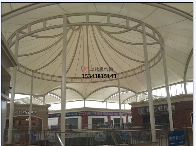 膜結(jié)構(gòu)雨棚中的膜布成分一般是PVDF材質(zhì),它具有較高的阻燃性,離開明火就能自動熄滅,消防安全這一塊讓您用得放心。