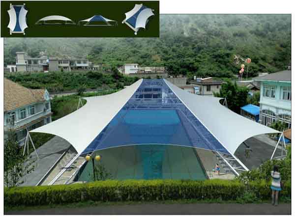 氣膜游泳館使用的膜材都是由聚酯纖維和多層涂層復(fù)合而成,符合歐美及中國環(huán)保標(biāo)準(zhǔn),是一種具有強(qiáng)度,柔韌性好的薄膜材料;在力學(xué)上織物基材具有抗拉強(qiáng)度,抗撕裂強(qiáng)度,耐熱性,耐久性,防火性;涂層材具有耐候性,防污性,加工性,耐水性,耐品,透光性