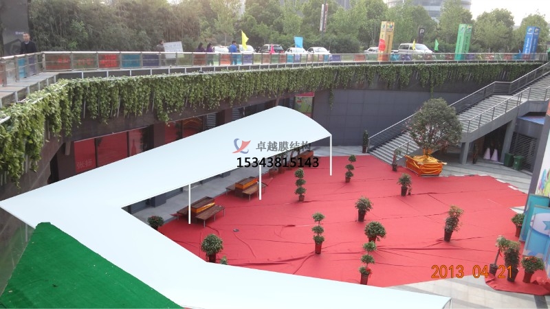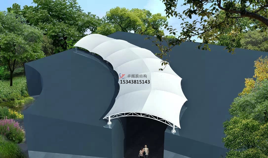 對于張拉膜結(jié)構(gòu)頂棚,任何附加的支撐和修飾都是多余的,其結(jié)構(gòu)本身就是造型;換句話說,不符合結(jié)構(gòu)的造型是不可能的,因?yàn)槟菢拥谋∧げ皇秋h動(dòng)的就是缺乏穩(wěn)定性的。張拉膜結(jié)構(gòu)的美就在于其“力”與“形”的完美結(jié)合。夜間光影投射效果:其中更常見的形式就是景觀張拉膜,景觀張拉膜能提供豐富多彩的用途,并與園林景觀溶為一體。創(chuàng)造出讓人們盡情享受的快樂空間。充分展示了結(jié)構(gòu)構(gòu)件清晰受力的藝術(shù)之美,它巧妙的整合周圍的環(huán)境,給人們一種高貴典雅、浪漫溫馨之感。張拉膜結(jié)構(gòu)以其輕盈飄逸的造型、柔美并帶有力量的曲線和大跨度和大空間的鮮明個(gè)性和標(biāo)識性,應(yīng)用于城市小品設(shè)計(jì)中。多種用途都表明,張拉膜的造型建筑更有簡約性使其不能隱藏任何設(shè)計(jì)缺陷,張力的松弛或是不連續(xù)都會(huì)被充分暴露出來,而且會(huì)導(dǎo)致膜面褶皺及變形,降低了結(jié)構(gòu)的使用壽命。