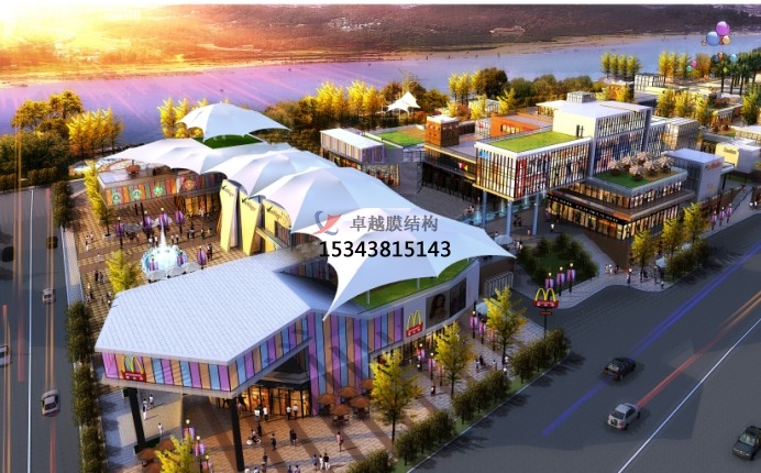 商業(yè)街膜結(jié)構(gòu)概念以及有何特點(diǎn)?商業(yè)膜結(jié)構(gòu)顧名思義是膜結(jié)構(gòu)應(yīng)用于商業(yè)中心的一種建筑,其實(shí)生活中我們可能已經(jīng)看到了,僅僅是因?yàn)閷?duì)這種建筑不太了解,所以不認(rèn)識(shí)而已。商業(yè)街是人流聚集的一個(gè)主要場(chǎng)所。采用東西方向排列,以入口為中軸對(duì)稱布局,建筑立面多采用塔樓,騎樓,雨罩的元素使空間產(chǎn)生新的劃分,室內(nèi)空間既設(shè)置了集中商業(yè),又有零散店鋪,是西方現(xiàn)代MALL與中國(guó)傳統(tǒng)商鋪的有機(jī)組合。