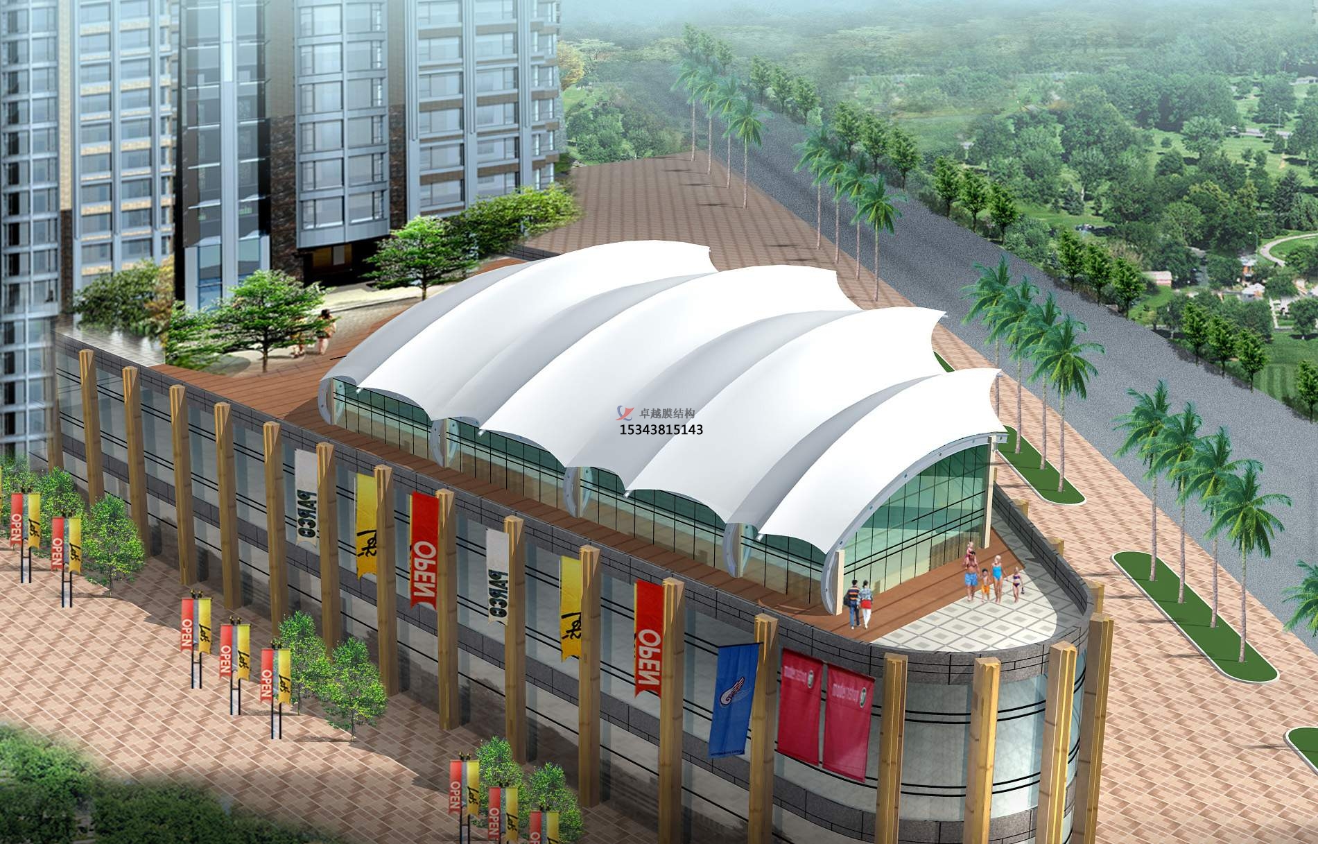 三,對于膜結(jié)構(gòu)景觀的安裝要考慮到天氣狀況,如條件比較惡劣,比如風(fēng)力較大、雨水較多的時候應(yīng)該停止施工,待惡劣天氣過后再重新進行。因為風(fēng)力較大的話,膜面以及下面的支柱容易出現(xiàn)顫動,既影響施工效果,也影響人員的安 全。而雨水較多也容易使雨水在膜面上堆積。