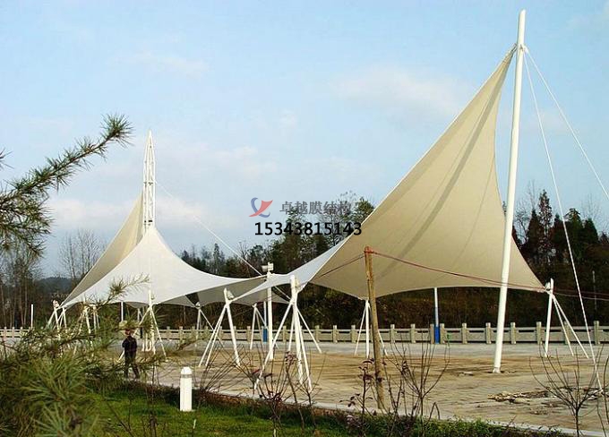 二、工期短。張拉膜景觀建筑工程中所有加工和制造均在工廠內(nèi)結(jié)束,可減少現(xiàn)場施工時間,避免出現(xiàn)施工穿插。與傳統(tǒng)建筑方法比較,張拉膜景觀建筑的施工周期至少可縮短一半,一般項目可在兩個月內(nèi)竣工,施工期間不影響其他工程的施工進度。