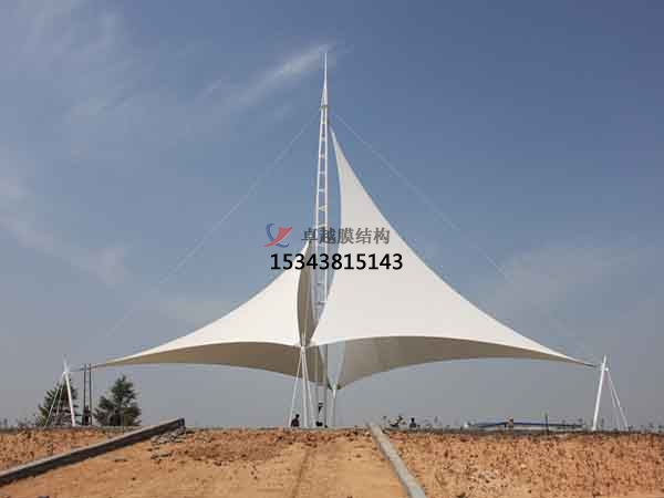 膜結(jié)構(gòu)以其輕盈飄逸的造型、柔美并帶有力量的曲線和大跨度和大空間的鮮明個性和標識性,應用于城市小品設計中。