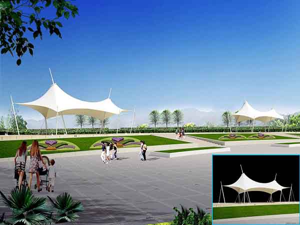 2、一個(gè)城市的中心區(qū)反映一個(gè)城市的地理風(fēng)貌和民族風(fēng)情,同時(shí),也是一個(gè)城市文化發(fā)展程度的標(biāo)志。而景觀設(shè)計(jì)要求其具有廣泛的可讀性、雅俗共賞,既有超凡脫俗的藝術(shù)價(jià)值,又能使大眾喜聞樂見與大眾息息相通。張拉膜以其輕盈飄逸的造型、柔美并帶有力量的曲線和大跨度和大空間的鮮明個(gè)性和標(biāo)識性,應(yīng)用于城市小品設(shè)計(jì)中。
