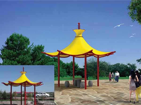 1、景觀膜結構是一種新型的建筑結構形式,同時是目前遮陽系列更具代表和發(fā)展?jié)摿Φ恼陉柈a(chǎn)品,是采用新型高強度材料PVP或Teflon和鈦鋁合金等鋼制材料組合而成 ,能夠產(chǎn)生預張應力,形成一次些空間結構,并且能夠承載額外的荷載。這種膜結構遮陽產(chǎn)品打破了傳統(tǒng)的直線型遮陽產(chǎn)品得全世界界的認可,讓建筑設計師了有了更大的想象和創(chuàng)造空間,該產(chǎn)品以其獨有的優(yōu)美曲面造型,簡潔、明快、鋼與柔、力與美的結合,呈現(xiàn)給人以耳目一新的感覺。我公司在黔南地區(qū)承接了黔南沙洲綠地公園景觀小品、黔南聚林·世紀城景觀小品、黔南布依族苗族自治州市區(qū)龍?zhí)段靼赌そY構景觀小品的設計施工,簡介如下: