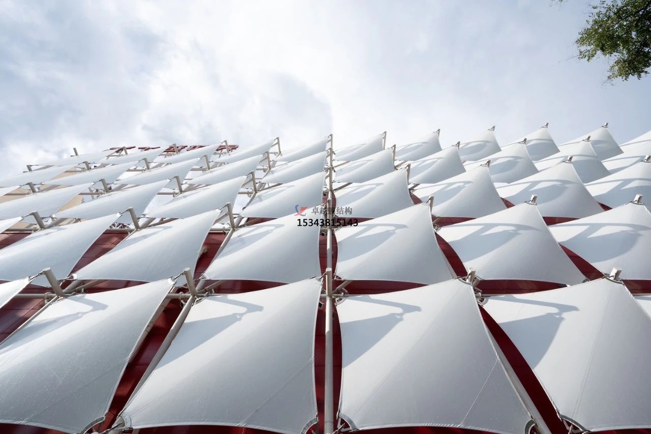 第二條:根據(jù)使用膜材的具體特征,比如在防火、防水、防風(fēng)的三點(diǎn)中,要經(jīng)過(guò)測(cè)試膜材的三項(xiàng),是否有基本的保障,由這也能知曉到膜結(jié)構(gòu)的質(zhì)量精度,完善了安全的特征。