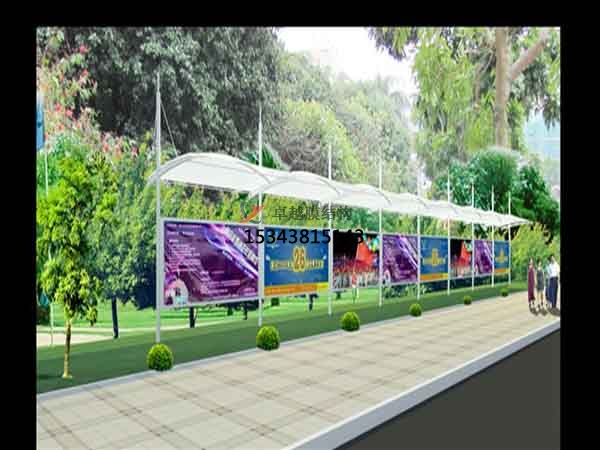膜結(jié)構(gòu)雨棚是一種全新的建筑結(jié)構(gòu)形式,它集建筑學(xué)、結(jié)構(gòu)力學(xué)、精細(xì)化工與材料科學(xué)、計(jì)算機(jī)技術(shù)等為一體,具有很高技術(shù)含量。其曲面可以隨著建筑師的設(shè)計(jì)需要任意變化,結(jié)合整體環(huán)境,建造出標(biāo)志性的形象工程。