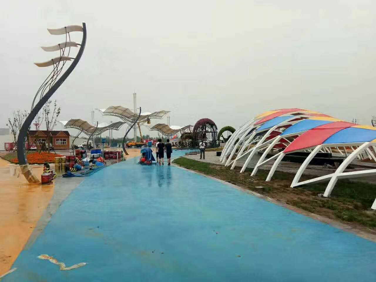 6、景觀膜結構不僅能夠根據(jù)園林景觀的實際情況設計出能夠跟自然景觀和諧一體的造型,重要的是還能提供豐富多彩的用途,讓人賞心悅目,景觀膜結構充分展示了結構構件清晰受力的藝術之美,配合周圍景色創(chuàng)造出一種現(xiàn)代與自然結合的感覺;