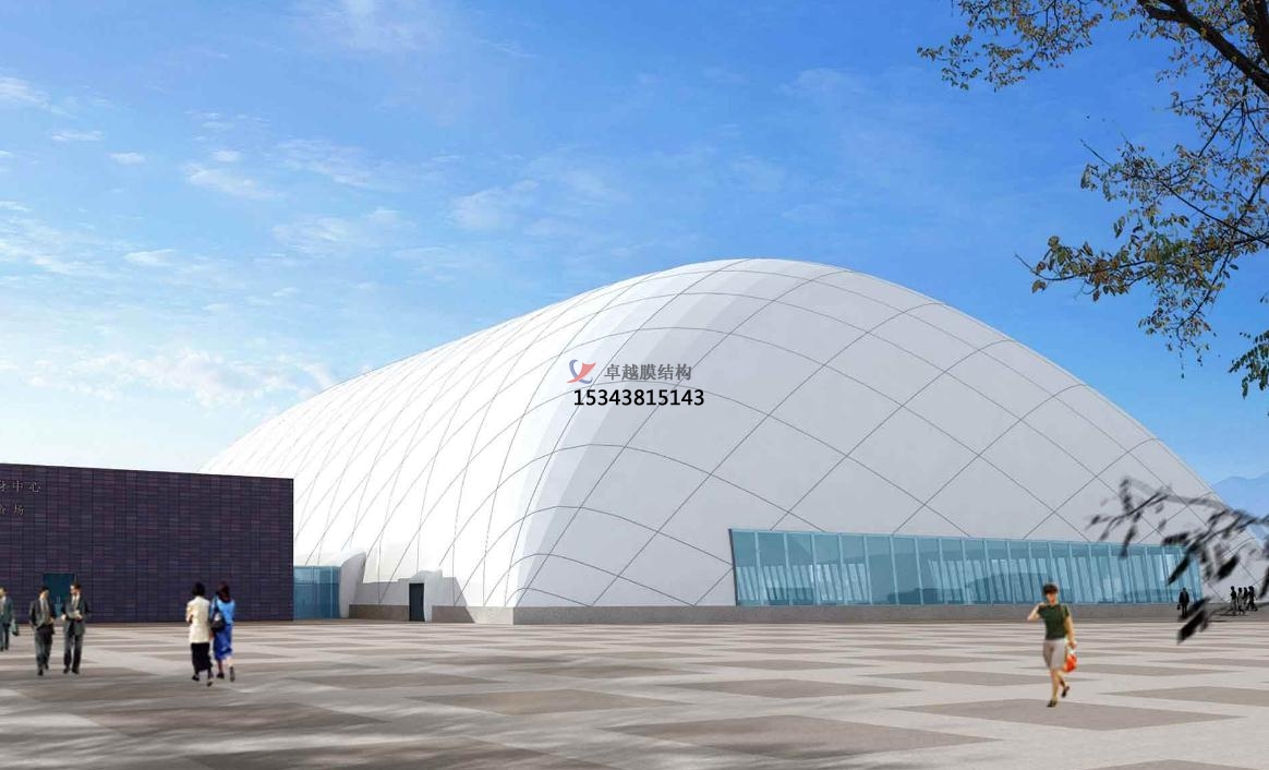 充氣膜體育館是用特殊的建筑膜材做外殼,配備一套智能化的機電設備在氣膜建筑內部提供空氣的正壓,把建筑主體支撐起來的一種建筑結構系統(tǒng)。